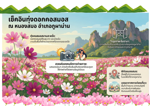 แหล่งท่องเที่ยว ทุ่งดอกคอสมอส หนองสมอ และ บึงบัว หนองสมอ พื้นที่บ้านโนนคอม ตำบลโนนคอมอำเภอภูผาม่าน จังหวัดขอนแก่น